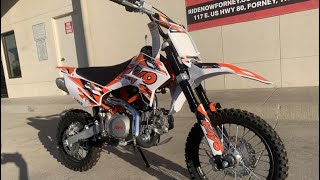 Looking for something a little more aggressive? The TD-125 has inverted forks, large disc brakes with a semi-automatic 4-speed transmission so you don’t need to worry about clutching. 14 and 12 inch wheels, seat height is 29.5 inches and weighs just 143 pounds. Electric and kick start.